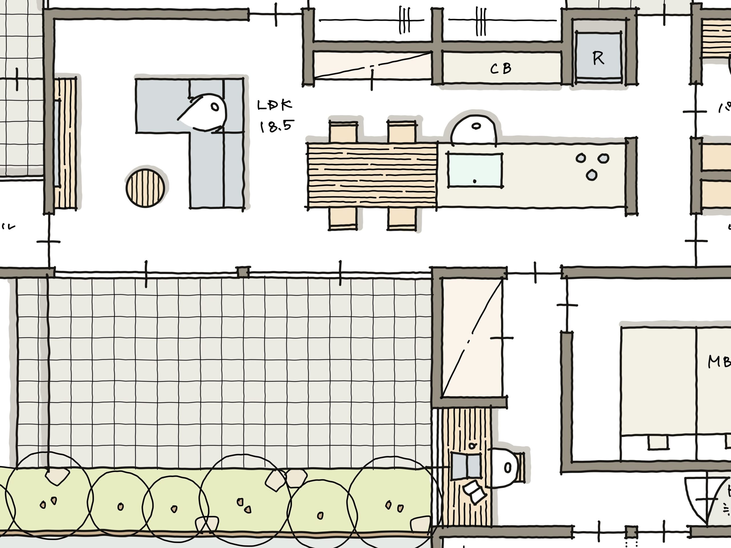 - 最後に余った場所が庭になる